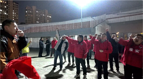 啦啦队员全情投入 铿锵有力的鼓点声中 队员们不断练习 磨合口号 呐喊助威声节奏鲜明 气势如虹 力求在比赛当日营造出最燃的氛围 将振奋人心的力量 传递给每一位球员“‘淮超’大战一触即发,球队在训练,啦啦队加油团也不能落后。在比赛的时候,我们要用最响亮的呐喊声为我们的淮安区球队加油助威。”球迷杨波表示。